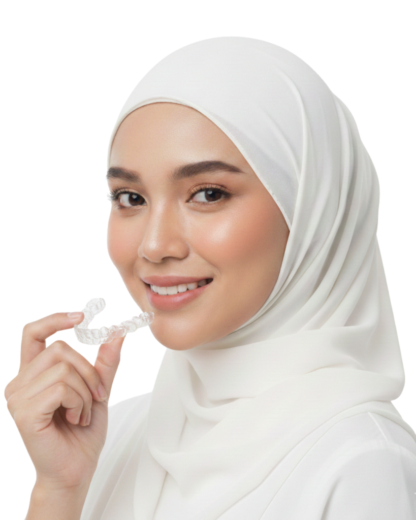 Transparent aligners yang hampir tak nampak, boleh buka-pakai sendiri & sesuai untuk dewasa yang nak senyum confident tanpa drama.